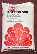 Just Right Potting Soils - are a blend of Michigan peat, perlite, horticultural vermiculite and added nutrients. Just Right Potting soil offers just the right body and texture for almost all plants, including house plants, container plants, flowers, garden vegetables and ornamentals shrubs. A wetting agent is also included to prevent water runoff. Dolomitic lime has been added to properly adjust pH. Available in 4, 8, 16, and 32 quart bags.